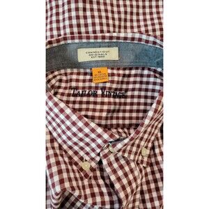 Tailor Vintage Shirt Mens Large Maroon and White Plaid Button Down Long Sleeve Cotton and polyester, Pre-owned in good condition