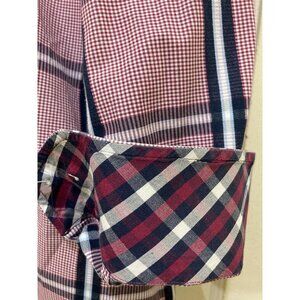 TailorByrd Collection Shirt Mens L Button Gingham Red Plaid Contrast Flip Cuff