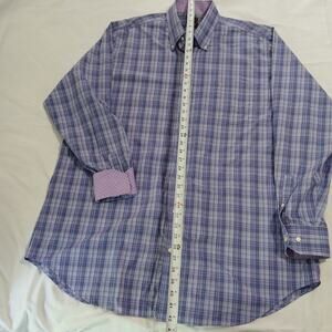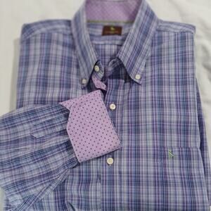 In stellar condition and featuring a trendy contrast flipped cuff design, this lavender and blue shirt is sure to make a statement.