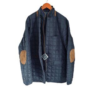 TailorByrd Men's Quilted Elbow Patch Removable Dickey Jacket Blue Size XL