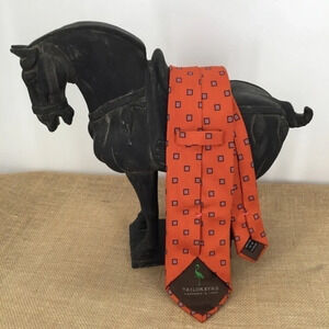 Nice TaylorByrd mens silk tie. These ties are made in Italy. The color is a burnt orange with a geometric square pattern.