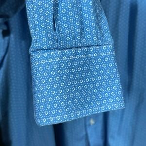 TailorByrd Men's XL Blue Geometric Dot Shirt Button Up Long Sleeve Flip Cuff