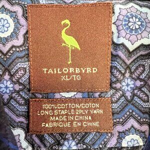 The Tailorbyrd 100% Cotton Stained-Glass Print Purple & Blue Long-Sleeve Button-Up in size XL is a stylish and versatile men's shirt perfect for various occasions. Made of high-quality woven cotton fabric with a stained-glass look pattern, this shirt features a collared neckline, button closure, and pockets for added convenience. The vibrant purple and blue colors add a colorful touch to your outfit, making it suitable for travel, parties, or casual wear during the summer, fall, or spring seasons. With its easy-care feature and regular fit, this Tailorbyrd shirt is a must-have for any man's wardrobe.