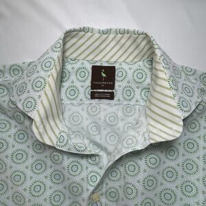 Tailorbyrd Button Down Shirt Mens XL Green Blue Circle Pattern Flip Cuff