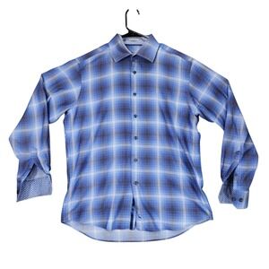 Tailorbyrd Button Up Shirt XL Men Classic Fit Blue Plaid Long Sleeve Flip Cuff