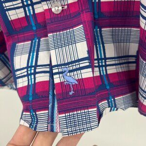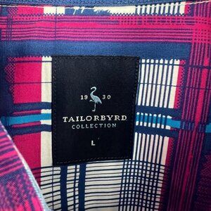 Tailorbyrd Collection 100% Cotton Pink Blue Check Button Front Shirt XL
