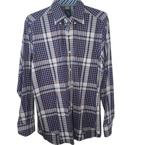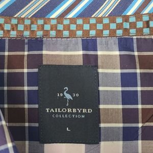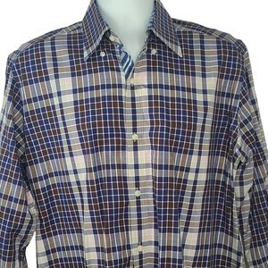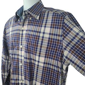 Tailorbyrd Collection Dress Shirt Large Blue Brown Plaid Mens Career Long Sleeve
