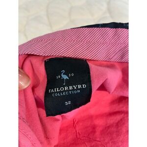 Keywords: Tailorbyrd Collection, Pink Shorts, Chino Shorts, Men's Shorts, Flamingo Embroidery, Casual Shorts, Summer Shorts, Cotton Shorts, Size 32, Preppy Style, Coastal Style, Resort Wear, Pink Chinos, Embroidered Shorts