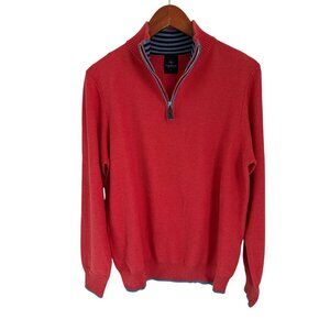 Tailorbyrd Cotton Textured Waffle Quarter-Zip Pullover Coral Size Med