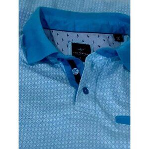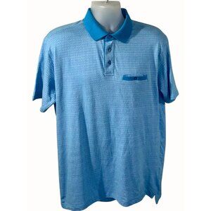 Tailorbyrd Mens Blue Geometric Print Polo Shirt Large Relaxed Fit Short Sleeve