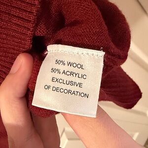 Striking burgundy sweater with a quarter zip-up collar. Tailorbyrd quality, wool and poly blend. Only worn a few times.