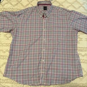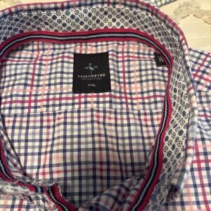 Tailorbyrd Mens Button Down Shirt Blue/Pink Short Sleeve Collar XXL