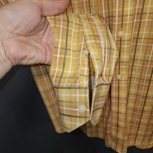 Elevate your wardrobe with this stylish Tailorbyrd dress shirt in a vibrant yellow plaid pattern. The long sleeve shirt features a collared neckline with a button-down closure and a classic fit, making it perfect for any occasion, whether it be casual, business, or activewear. The shirt is made of 100% cotton fabric, which is light in wash and machine washable for easy care.