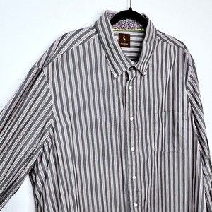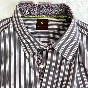 Tailorbyrd Mens Long Sleeve Dress Shirt 2XL Gray Striped Floral Contrast