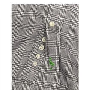 Sharp and versatile Tailorbyrd button-down shirt featuring a classic black-and-gray plaid pattern with the signature embroidered green flamingo logo. Crafted from soft, comfortable fabric that works perfectly for both office and casual wear.