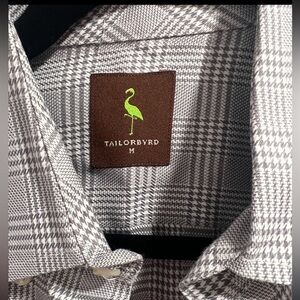 Tailorbyrd Men’s Medium Gray Plaid Button-Down Shirt Flamingo Logo