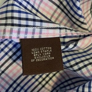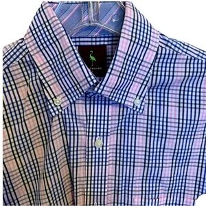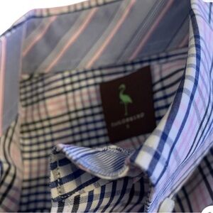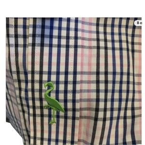 Tailorbyrd Men’s Medium Pink Blue Plaid Button-Down Shirt Flamingo Logo