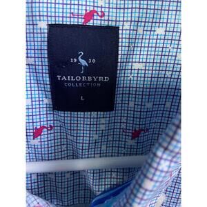 Tailorbyrd Mens S/S Blue Cotton Flamingo Check Plaid Print Casual Shirt - Size L