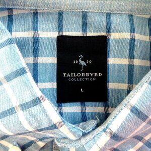 Tailorbyrd Men's Shirt Large Check Blue Turquoise White Cotton Short Sleeve