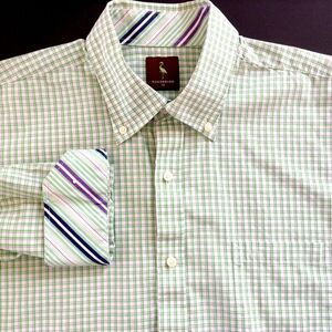 Tailorbyrd Men's Shirt XL Contrast Flip Cuff Green White Blue Check Button Front