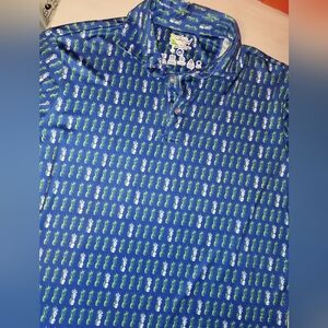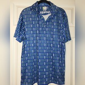 Tailorbyrd Pineapple Polo Size Medium Blue Green SPF 30 Quick Dry