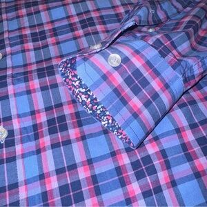 Tailorbyrd Shirt Mens Large Blue Pink Plaid Button Up Long Sleeve Flip Cuff