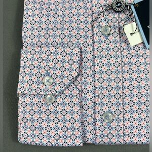 Tailorbyrd Sport Shirt Medallion Poplin Print Medium Pink Cotton Spandex