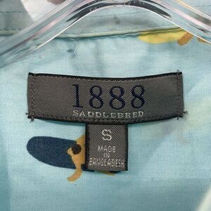 1888 Blue Brand Tailored Fit Short Sleeve Button Up Surfers Surf Board Print Casual Cotton Shirt Fun Print With Chest Pocket