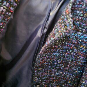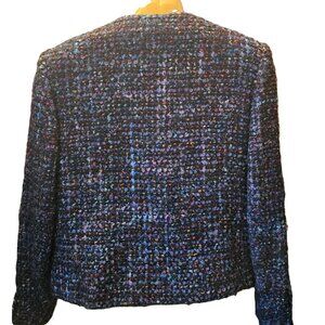 This jacket was MADE IN THE USA by union workers, part of the International Ladies Garment Workers Union. Based on the colors of the tweed fabric, it can be worn with a variety of colorful shirts, skirts, slacks, etc. This jacket, a size 6 with padded shoulders, was manufactured by Herbert Grossman. This jacket is in perfect condition, having been worn less than six times.