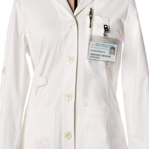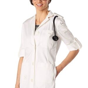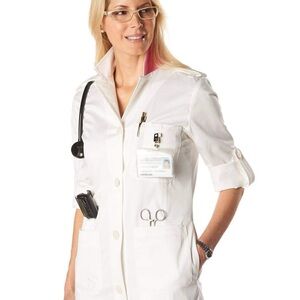 Upgrade your work wardrobe with this elegant, designer lab coat made specifically for women in healthcare. Combining fashion and functionality, this stylish lab coat offers a tailored fit that flatters all body types, while maintaining a professional and polished appearance. Perfect for doctors, clinicians, and other professionals who value style in the workplace.