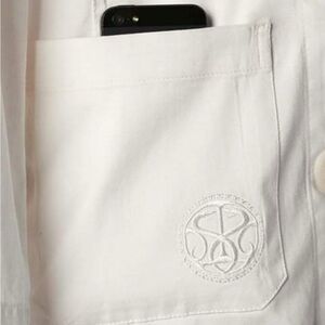 Professional Style. Classic white coat with clean lines, designed to elevate any work ensemble.