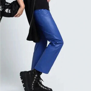 These blue slacks offer a sleek and tailored fit, crafted from 100% lamb skin for a soft and polished appearance. The smooth waistband enhances comfort, making them perfect for both casual and professional settings. A versatile addition to any wardrobe, these pants combine style and sexy effortlessly.