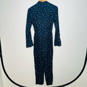 Tailored Rebecca Taylor Navy Blue Silk-Blend Tie-Waist Long Sleeve Jumpsuit. Size 2. Please see photos for measurements and material content. Good Pre-Owned Conditon.