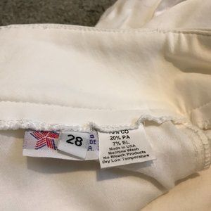Talored Sportsman White Trophy Hunters, size 28. There are some very light marks on these, shown in the picture, and some discoloration where the boots go. The marks are honestly not very noticeable, but they are there. Worn only once!