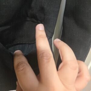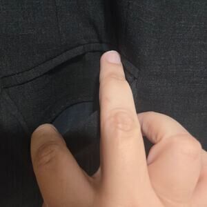 Condition: Pre-owned. Some faint marks, light wear, and wrinkles from storage. One pocket area shows minor loose stitching. Exterior welt pockets still have factory basting stitches intact. Style tag is missing. See all photos.