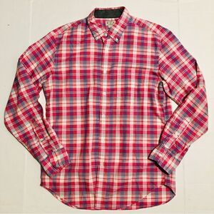 Tailored by J. Crew Pink Plaid 100% Cotton Button Up Shirt (M)