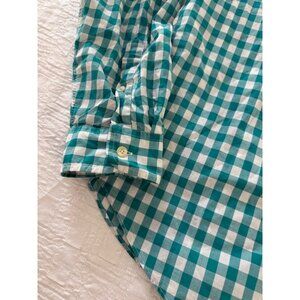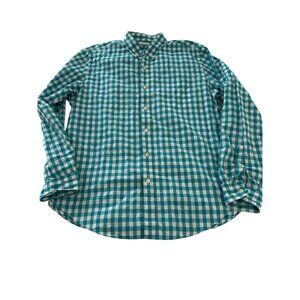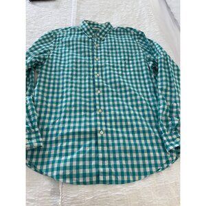 Tailored by J.Crew Mens Teal Gingham check button down all Cotton poplin Shirt L