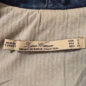Tailored denim jacket cropped to right at hip line. Worn once. Fits like a medium