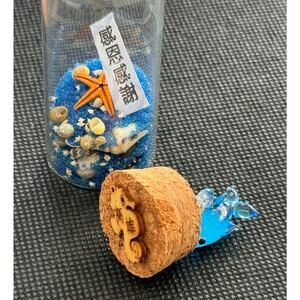 1. Star sand bottle with mini shells and a small dolphin charm from Kaohsiung (高雄). Kaohsiung is a major port city in southern Taiwan known for seaside views and local crafts. The letters inside the bottle read “感恩感謝,” a phrase expressing gratitude and thankfulness. It adds a very adorable mini accent to your space.