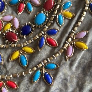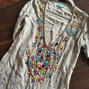 Super cool beaded coverup from Taj by Sabrina Crippa size M. It’s sheer and long and the beads just glow in the sun! Perfect for a pool party or the resort!