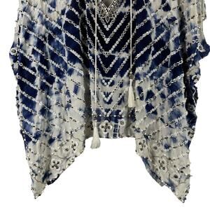Taj by Sabrina Crippa Blue and White Beaded Kaftan Silk Blouse Size S Cover Up