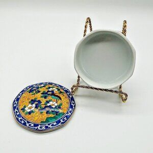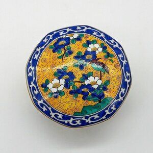 Colorful hand-decorated Kutani porcelain covered trinket dish from Takahashi San Francisco.