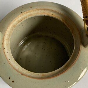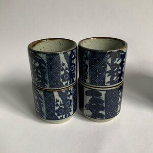 Takahashi Japan Vintage Gray Speckled Blue Bamboo Print Teapot 4 Cups Set
