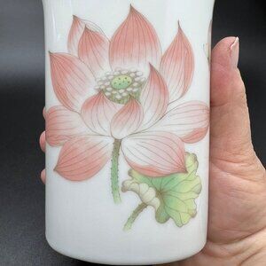 Charming vintage Takahashi Medley bud vase from San Francisco. Features a delicate water lily and butterfly design on an oval shape. Perfect for displaying small flowers, this 4.25" vase is a unique find for collectors and lovers of vintage decor.