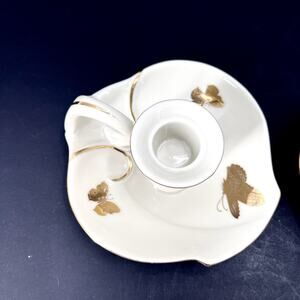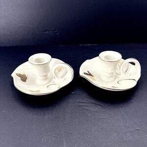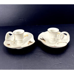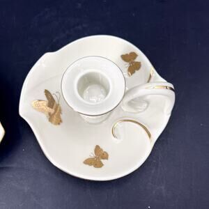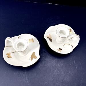 Takahashi San Francisco Ivory & Gold Gilt Butterfly Taper Candle Holder Set Finger Carry. Cottagecore Decor