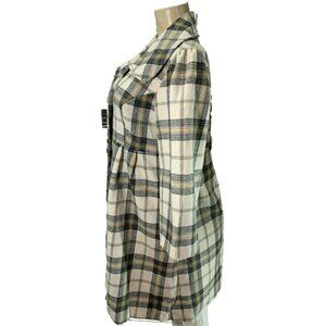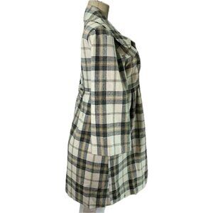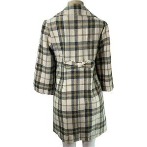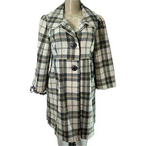 ITEM: Takara L Black-Cream Plaid Lined 2 Button Front Collar Wool Blend 3/4 Sleeve Coat