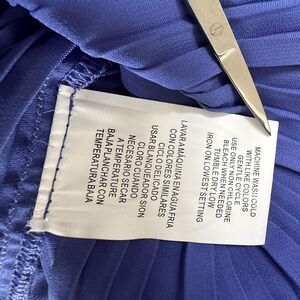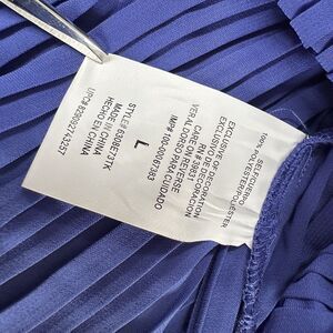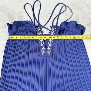 Takara Women's Large Embroidered Floral Pleated Blue V-Neck Tank Top Sleeveless