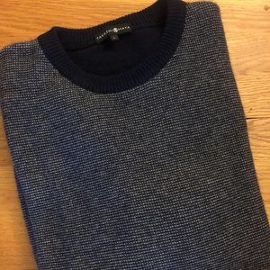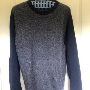 Navy checkered patter on body, solid navy on sleeves. Size Large. Like new, no tags.