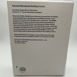 100% authentic Takashi Murakami x MoMA holiday cards. Says "Happy Merry Christmas" in the interior. The open box includes 9 cards and 9 envelopes.