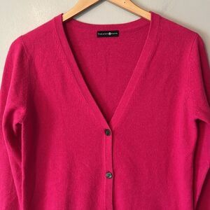 Takashimaya Japan 100% Cashmere Cardigan Sweater Pockets Size Medium Hot Pink